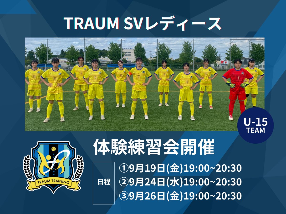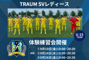 【TRAUM SVレディース(栃木)】「体験練習会」開催のお知らせ[9/19,9/24,9/26]