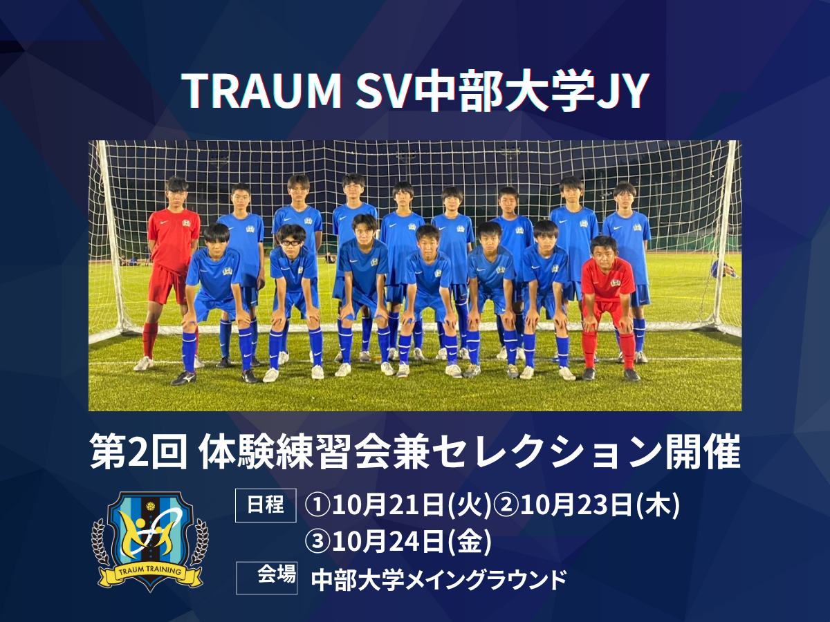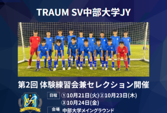 【TRAUM SV中部大学ジュニアユース】第2回体験練習会兼セレクション開催のお知らせ[10/21,10/23,10/24]